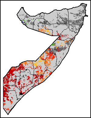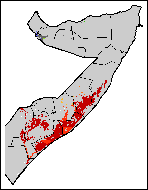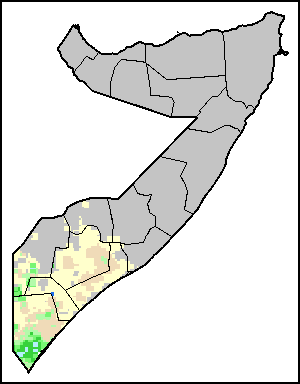 The Agricultural Stress Index (ASI) is a quick-look indicator that facilitates the early identification of cropped land with a high likelihood of water stress (drought). The Index is based on the integration of the Vegetation Health Index (VHI) in two dimensions that are critical in the assessment of a drought event in agriculture: temporal and spatial. The first step of the ASI calculation is a temporal averaging of the VHI, assessing the intensity and duration of dry periods occurring during the crop cycle at the pixel level; this calculation includes the use of crop coefficients, which introduces sensitivity of a crop to water stress during each phenological phase. The second step determines the spatial extent of drought events by calculating the percentage of pixels in arable areas with a VHI value below 35 percent (this value was identified as a critical threshold in assessing the extent of drought in previous research by Kogan, 1995). Each administrative area is classified according to the percentage of the affected area to facilitate the quick interpretation of results.