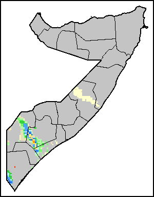Нормализованный Индекс Разности Растительности (NDVI) измеряет «зелёность» почвенного покрова и используется в качестве прокси, для определения плотности и здоровья растительного покрова. Значения NDVI варьируются от +1 до -1, с высокими положительными значениями, соответствующими плотной и здоровой растительности, и низкими и/или отрицательными значениями NDVI, указывающими на плохое состояние растений и редкий растительный покров. NDVI Аномалия указывает на изменения в текущей декаде относительно среднего значения длительных исторических показателей, где положительное значение (например, 20 процентов) означает улучшенное состояние растительности по сравнению со средним показателем, тогда как отрицательное значение (например, -40 процентов) указывает на сравнительно плохое состояние растений.