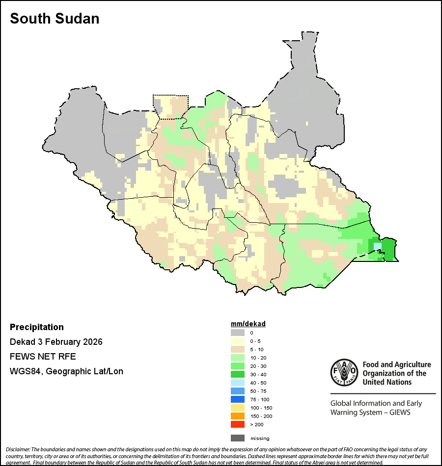 该图谱显示了每一旬(十天)的累积降水量。 所有非洲国家的降水量估算(除佛得角和毛里求斯外)均取自NOAA/FEWSNet,其他国家则取自ECMWF。
