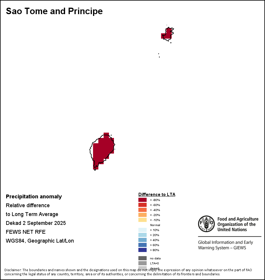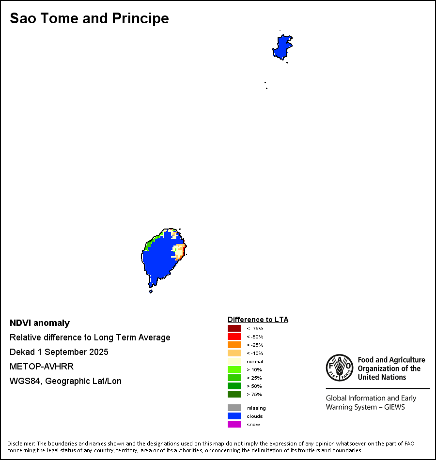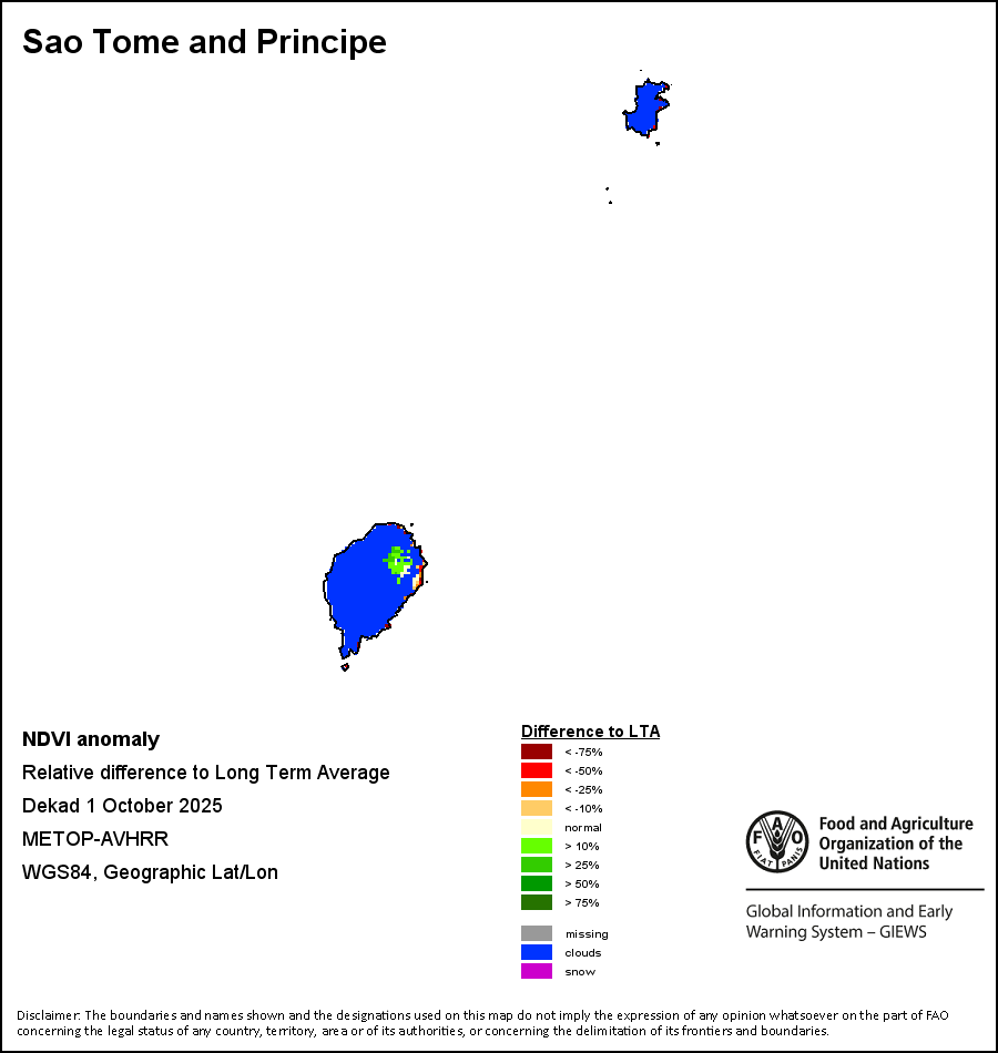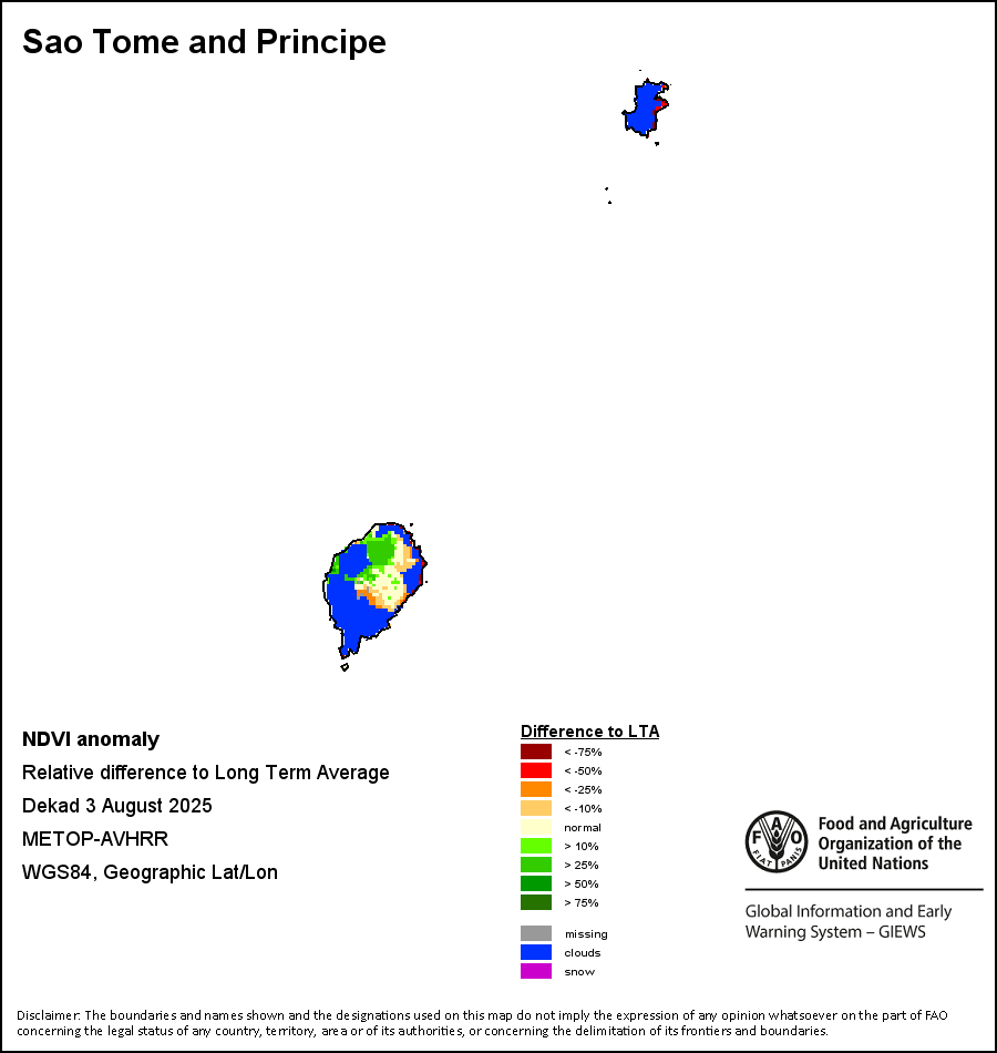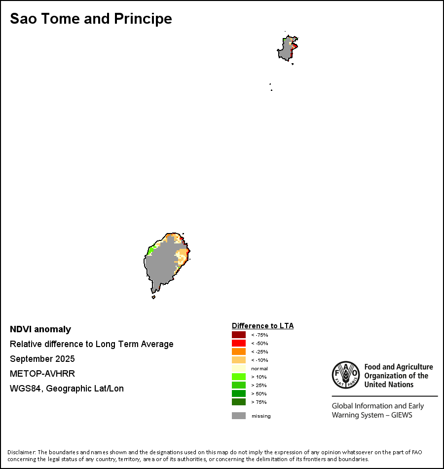 Les trois indicateurs de végétation sont basés sur les données relatives à la végétation pour 10 jours (décade) du capteur Metop-AVHRR par pixel de 1 km (à partir de 2007). Les données à 1 km de résolution pour la période 1984-2006 ont été dérivées des données du NOAA-AVHRR à 16 km de résolution. - Les estimations concernant les précipitations pour tous les pays africains (à l'exception du Cap Vert et de Maurice) proviennent du NOAA/FEWSNet, tandis que les données concernant les autres pays sont obtenues à partir du CEPMMT.