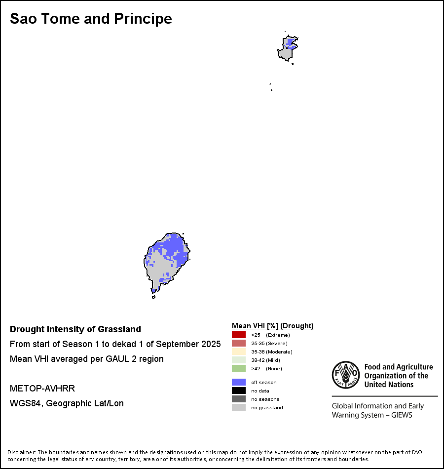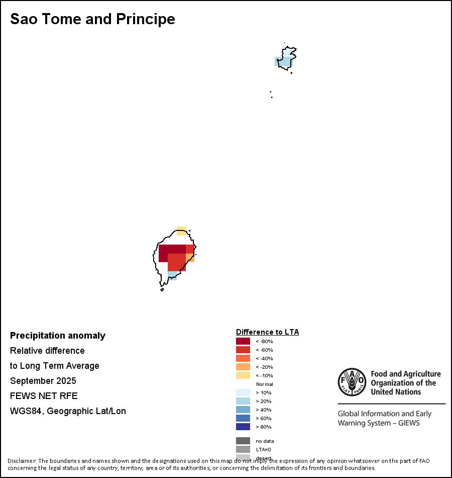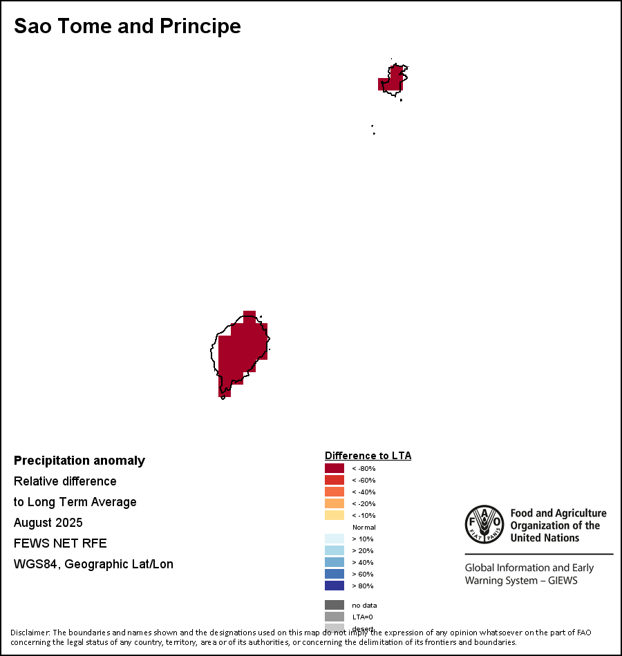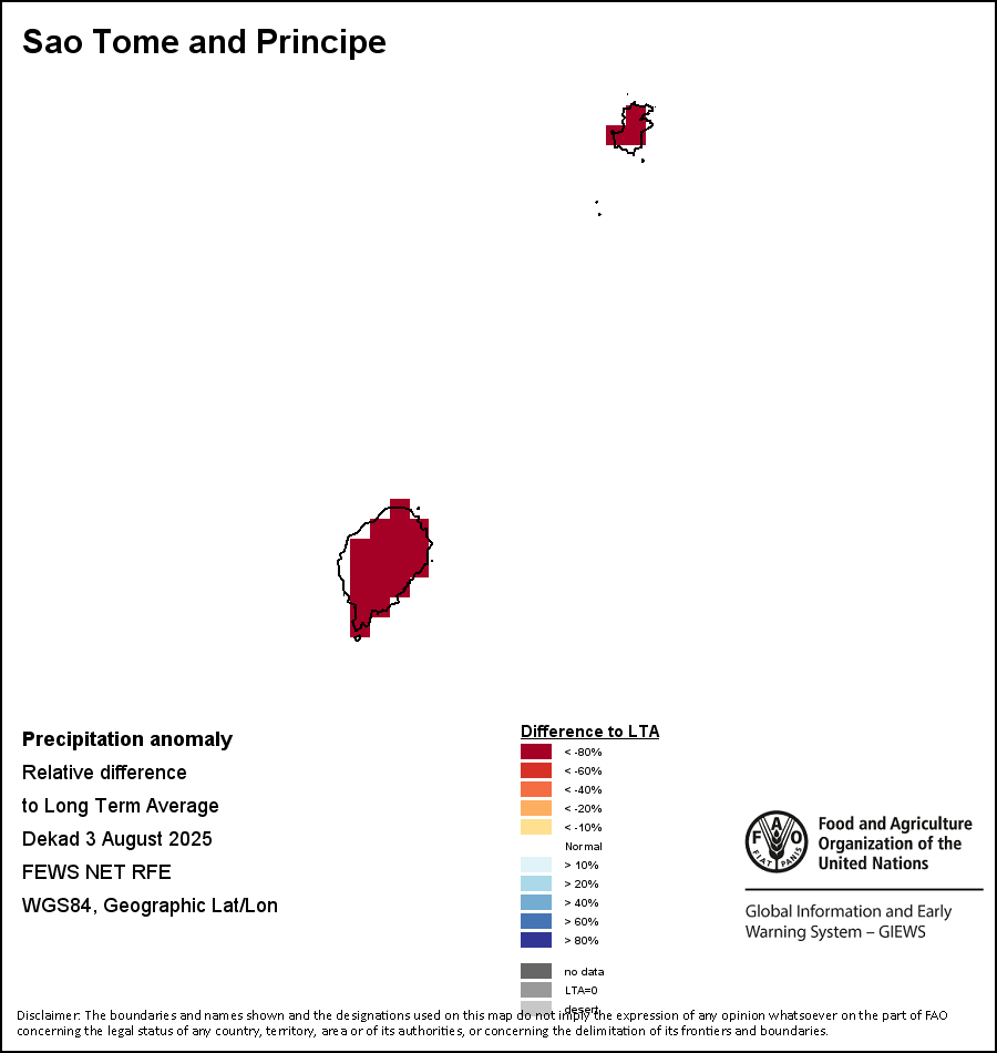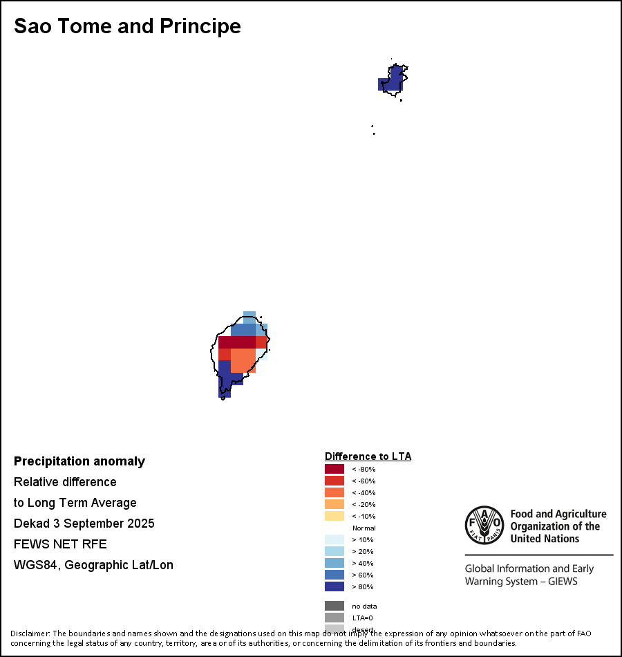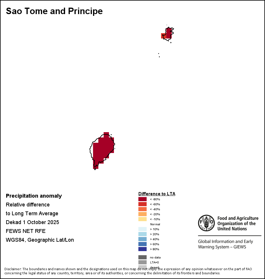 Les trois indicateurs de végétation sont basés sur les données relatives à la végétation pour 10 jours (décade) du capteur Metop-AVHRR par pixel de 1 km (à partir de 2007). Les données à 1 km de résolution pour la période 1984-2006 ont été dérivées des données du NOAA-AVHRR à 16 km de résolution. - Les estimations concernant les précipitations pour tous les pays africains (à l'exception du Cap Vert et de Maurice) proviennent du NOAA/FEWSNet, tandis que les données concernant les autres pays sont obtenues à partir du CEPMMT.