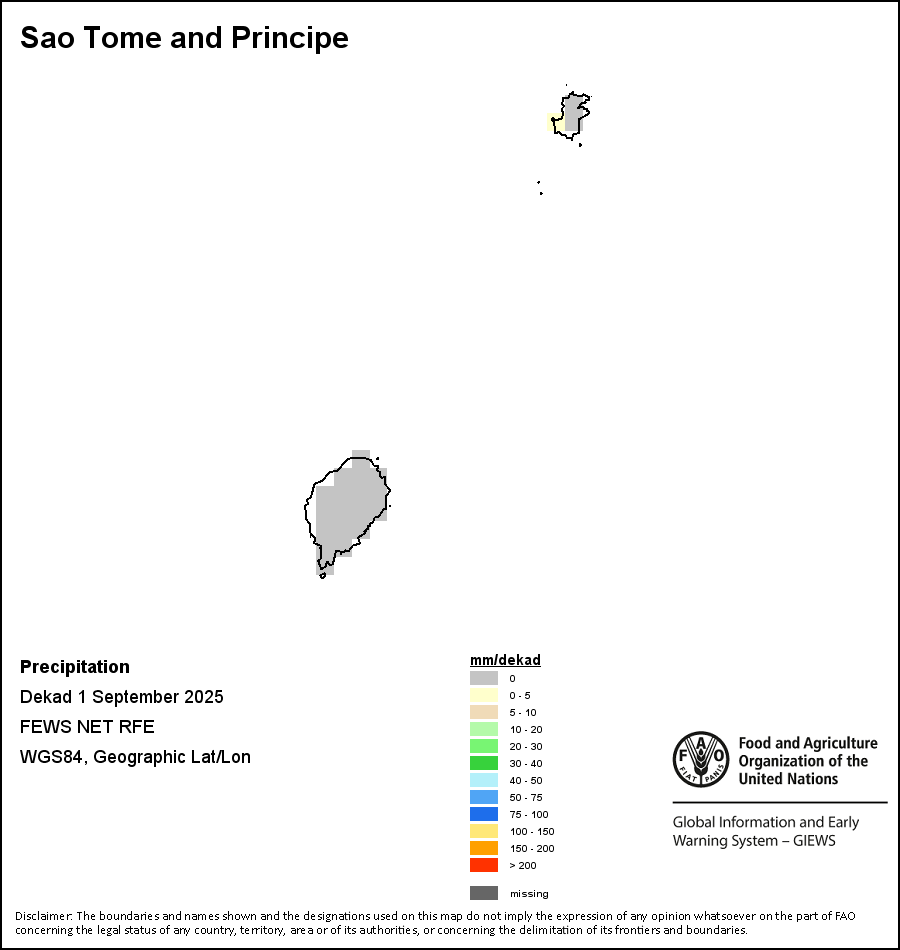 La carte illustre les volumes cumulés de précipitations au cours d’une décade (une période de 10 jours). Les estimations concernant les précipitations pour tous les pays africains (à l'exception du Cap Vert et de Maurice) proviennent du NOAA/FEWSNet, tandis que les données concernant les autres pays sont obtenues à partir du CEPMMT.