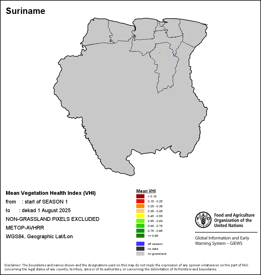 The country level maps and graphs depict the latest 36-month period of the seasonal, vegetation and precipitation indicators. The data is presented by dekad and month.   More