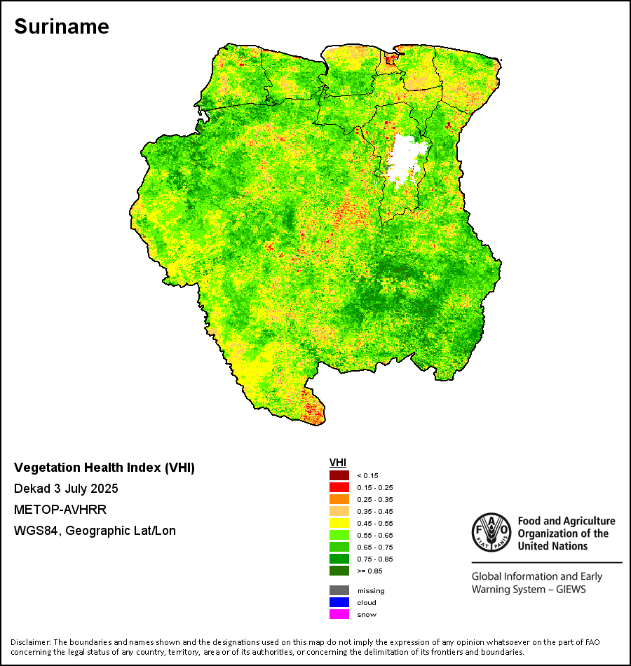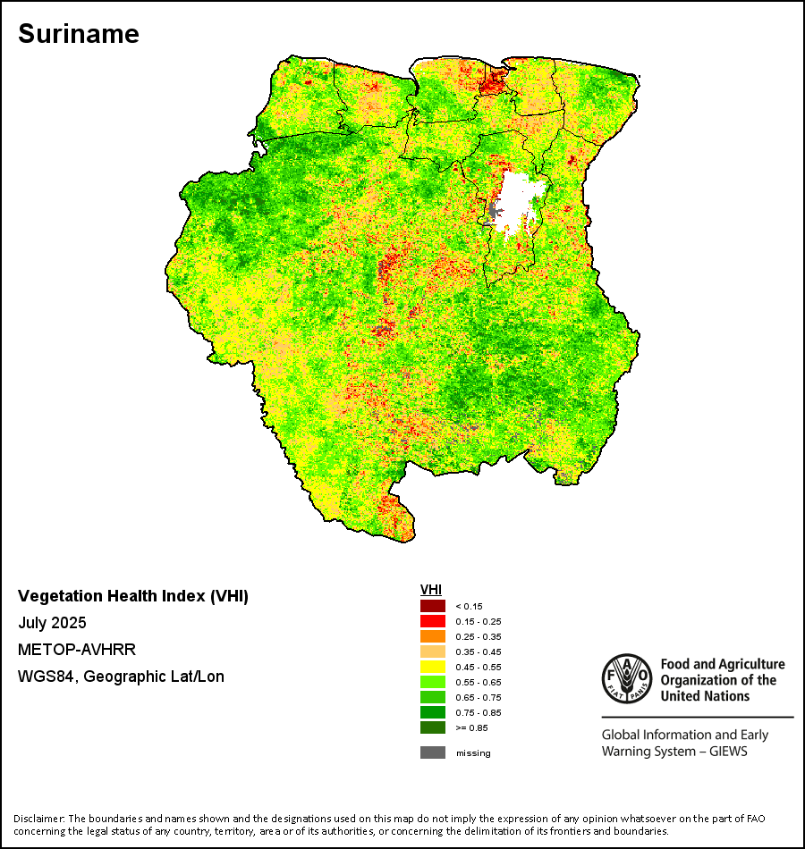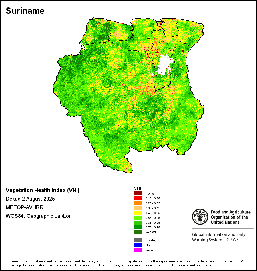 All three vegetation indicators are based on 10-day (dekadal) vegetation data from the METOP-AVHRR sensor at 1 km resolution (2007 and after). Data at 1 km resolution for the period 1984-2006 are derived from the NOAA-AVHRR dataset at 16 km resolution. Precipitation estimates for all African countries (except Cabo Verde and Mauritius) are taken from NOAA/FEWSNet, while for the remaining countries data is obtained from ECMWF.
