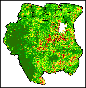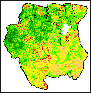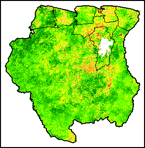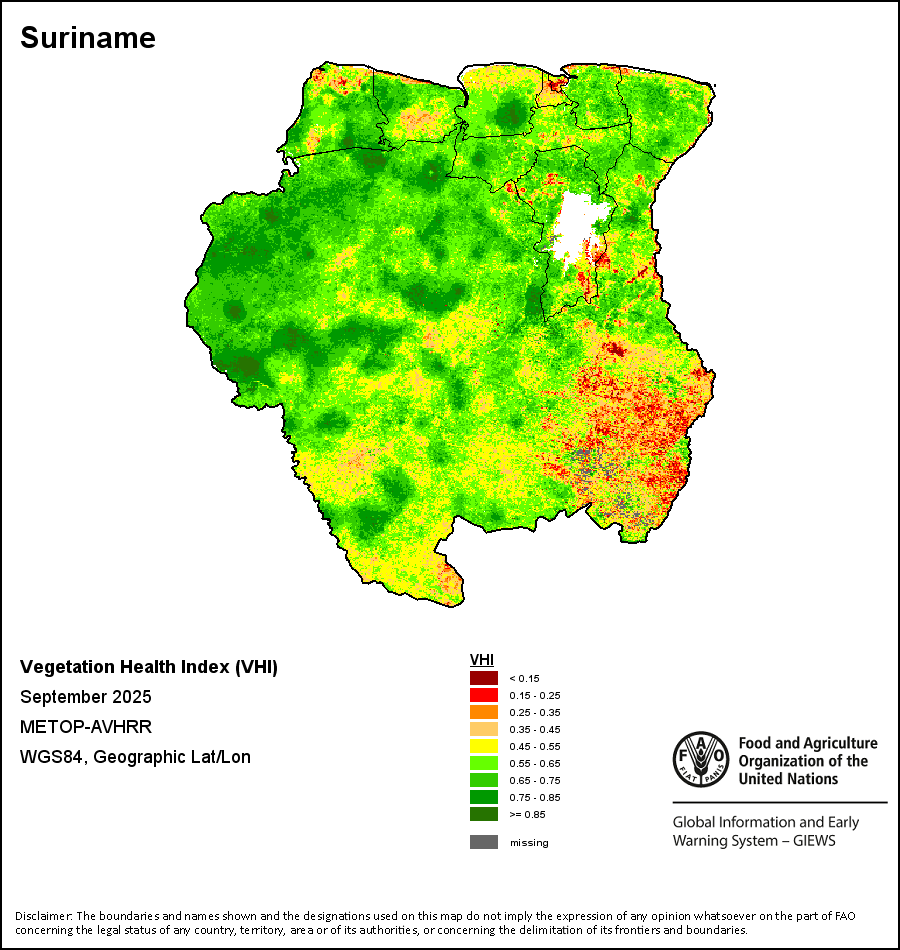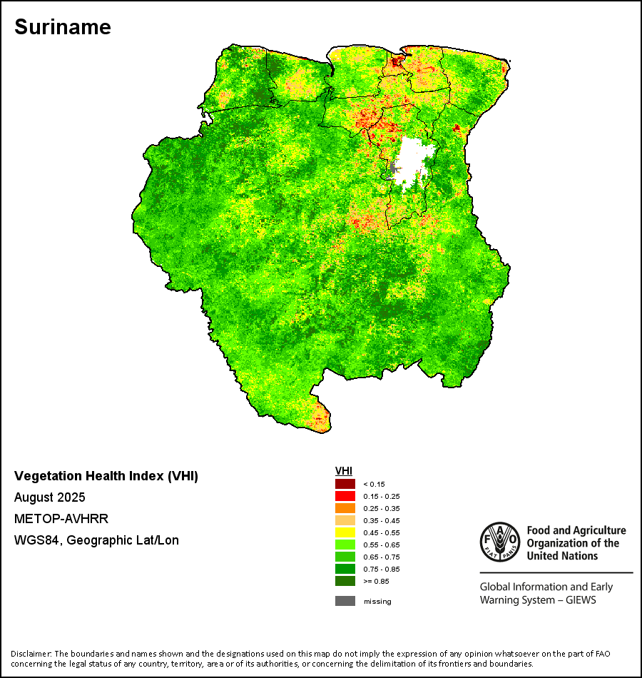 The Vegetation Health Index (VHI) illustrates the severity of drought based on the vegetation health and the influence of temperature on plant conditions. The VHI is a composite index and the elementary indicator used to compute the ASI. It combines both the Vegetation Condition Index (VCI) and the Temperature Condition Index (TCI). The TCI is calculated using a similar equation to the VCI, but relates the current temperature to the long-term maximum and minimum , as it is assumed that higher temperatures tend to cause a deterioration in vegetation conditions. A decrease in the VHI would, for example, indicate relatively poor vegetation conditions and warmer temperatures, signifying stressed vegetation conditions, and over a longer period would be indicative of drought. The VHI images are computed for the two main seasons and in three modalities: dekadal, monthly and annual.