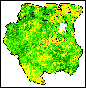 The Annual Weighted Mean Vegetation Health Index (Weighted Mean VHI) allows the user to assess the overall severity of drought for an entire growing season, examining the vegetation health and the influence of temperature on plant conditions. The Annual Weighted Mean VHI takes into account the sensitivity of a crop to water stress over its growing season, and calculates the temporal impact of moisture deficits and temperature over the complete growing season.