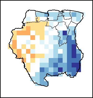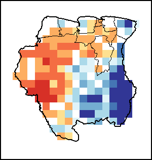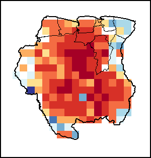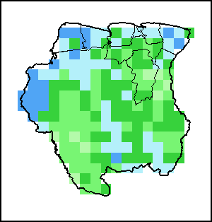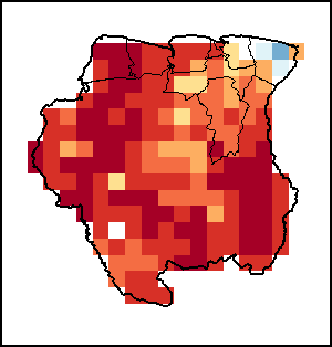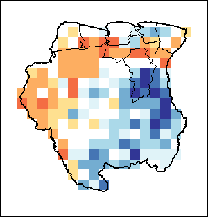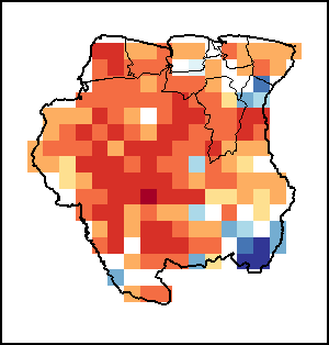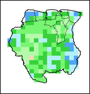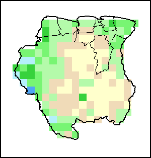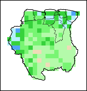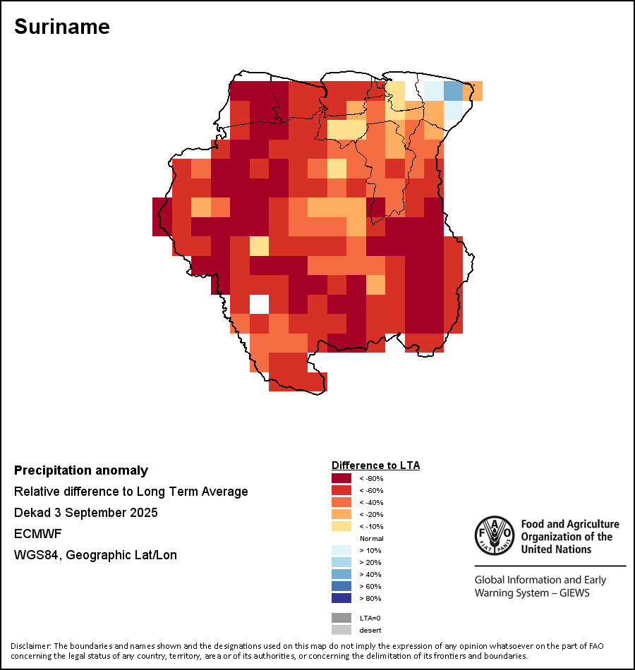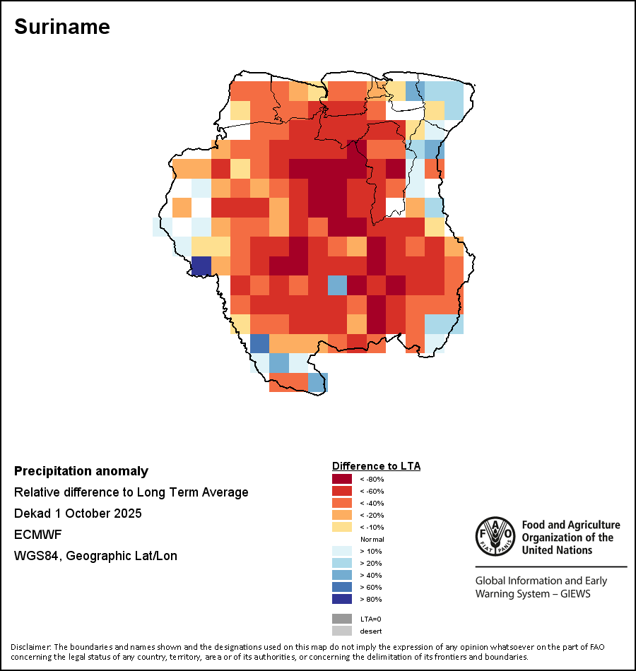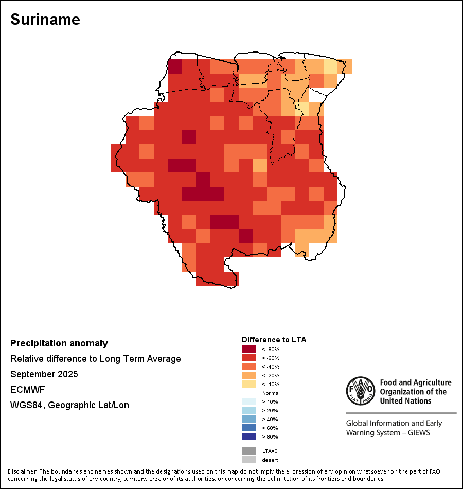 The map illustrates the difference between the current rainfall volume and the average level. Rainfall levels are compared with the Long-Term Average (LTA), which refers to the period 1989-2015. Warmer colours identify areas which have received lower-than-average rainfall, while colder colours are given to areas where precipitation has been above average.