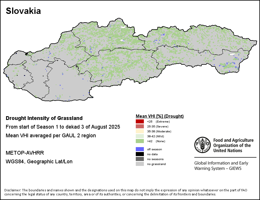 植被健康指数(VHI)根据植被健康状况以及气温对作物状况的影响情况显示干旱的严重程度。 VHI是一项综合指数,是用于计算ASI的基础性指标。它结合了植被状况指数(VCI)和气温状况指数(TCI)。TCI的计算采用了与VCI类似的方程,但它把当前气温与长期最高和最低值联系起来,因为一个假定前提是气温越高就倾向于造成植被状况恶化。比方说,VHI指数下降就意味着植被状况相对较差,而气温越高则意味着植被状况受到胁迫,较长时间延续则成为干旱的指征。VHI映像针对两个主要季节进行计算并分为三种时间模式:旬度、月度和年度。