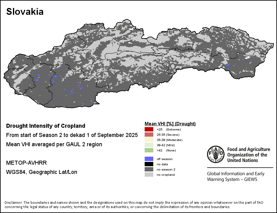 农业干旱依据其强度划分为四类:极端、严重、重度或轻度。干旱的强度通过各全球行政单位分层制度二级区域(GAUL 2)地区累积加权平均植被健康指数计算得出,意味着植被健康状况越差旱情就越严重。