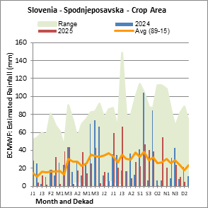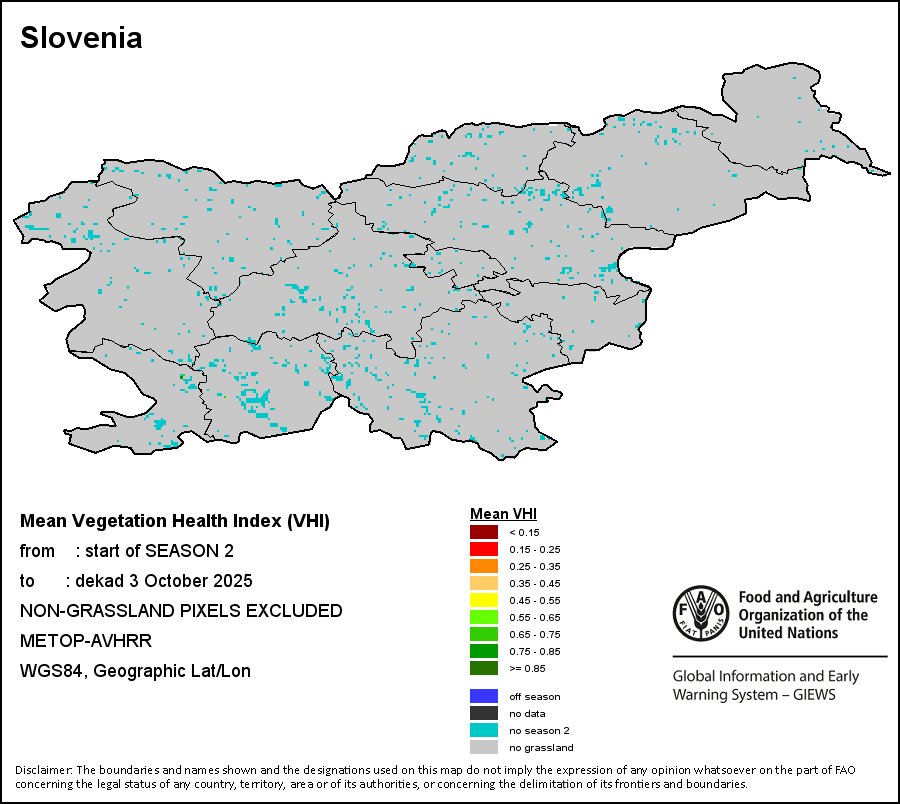 The country level maps and graphs depict the latest 36-month period of the seasonal, vegetation and precipitation indicators. The data is presented by dekad and month. All three vegetation indicators are based on 10-day (dekadal) vegetation data from the METOP-AVHRR sensor at 1 km resolution (2007 and after). Data at 1 km resolution for the period 1984-2006 are derived from the NOAA-AVHRR dataset at 16 km resolution. Precipitation estimates for all African countries (except Cabo Verde and Mauritius) are taken from NOAA/FEWSNet (16 km resolution), while for the remaining countries data is obtained from ECMWF (25 km resolution). Owing to the higher resolution of vegetation indicators (e.g., NDVI, VHI) compared to coarser precipitation indicators, the number of sub-national units for which valid zonal statistics can be generated for vegetation indices is greater than the number of units for precipitation indicators for certain countries.