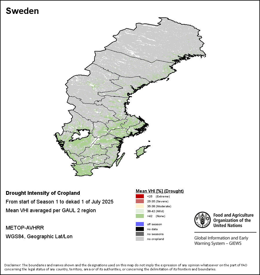 تصنف موجات الجفاف الزراعي تبعاً لشدتها وتقسم إلى أربعة مستويات: متطرفة أو شديدة أو متوسطة، أو خفيفة. وتحسب شدة الجفاف من خلال متوسط المؤشر المرجح لصحة النبات، الذي يشير إلى أنه كلما تردت الصحة النباتية أكثر كان الجفاف أشد. أما الملخص السنوي لشدة الجفاف فيعطي المستخدم إمكانية تقييم إجمالي شدة الجفاف على امتداد الموسم الزراعي بأكمله.