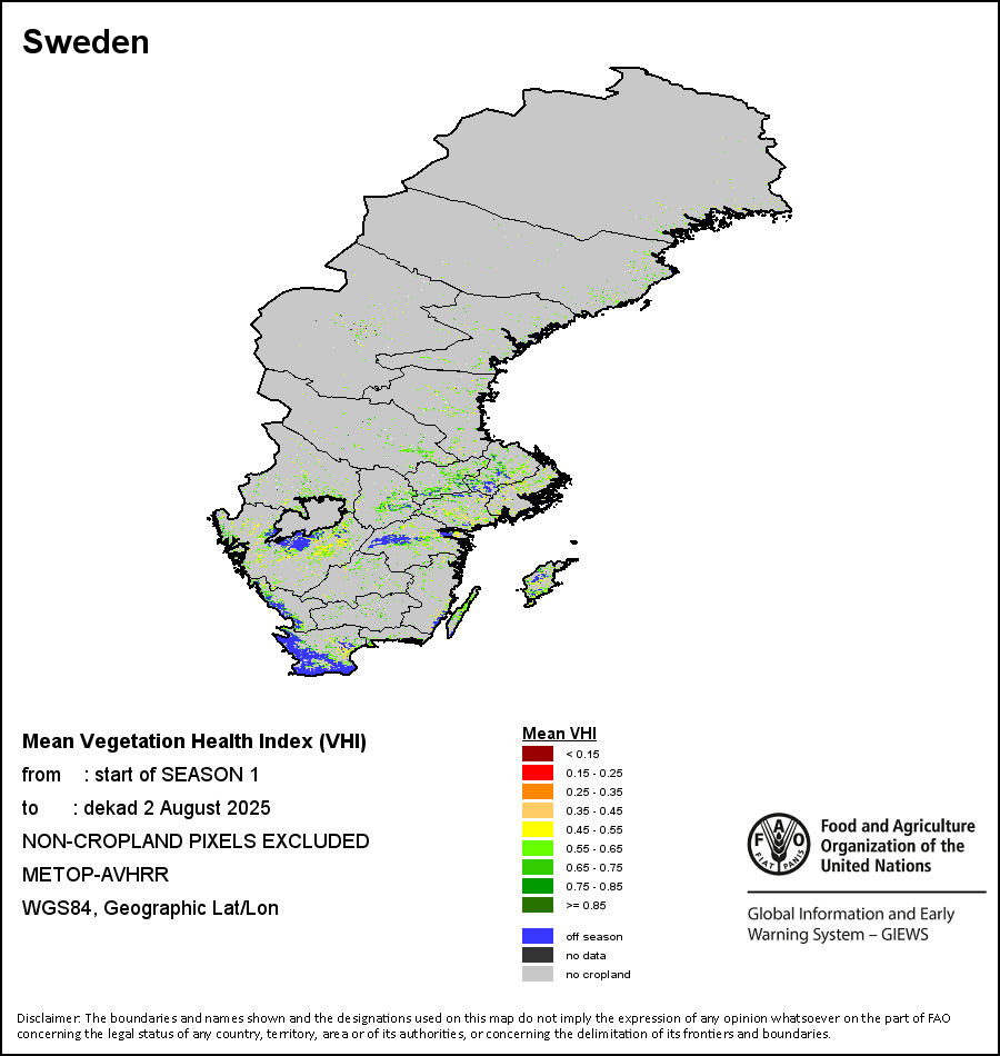 يتيح متوسط مؤشر الصحة النباتية للمستخدم تقييم شدة الجفاف من بداية الموسم الزراعي، حيث يتحقق من صحة النبات وتأثير درجات الحرارة في حالة النبات. أما متوسط مؤشر الصحة النباتية فيمثل معدل قيم مؤشر الصحة النباتية المأخوذة كل عشرة أيام على امتداد الموسم الزراعي للمحصول وحتى تاريخه. ويأخذ بعين الاعتبار حساسية المحصول للإجهاد المائي خلال الموسم الزراعي ويحسب التأثير الزمني لنقص الرطوبة منذ بداية الموسم الزراعي وحتى فترة العشرة أيام الراهنة.