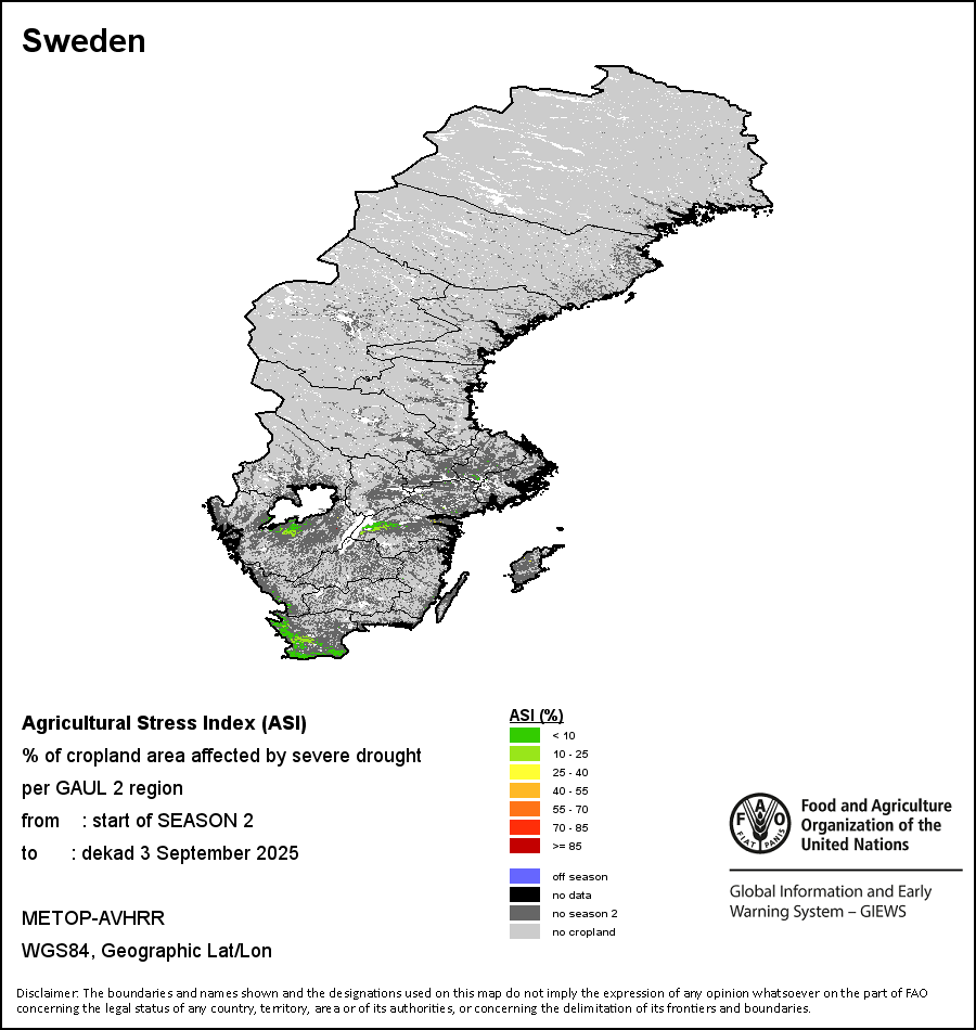 يصور مؤشر الإجهاد الزراعي السنوي النسبة المئوية من الأراضي الزراعية المتأثرة بالجفاف على امتداد الموسم الزراعي بأكمله ضمن منطقة إدارية ما. ويختلف هذا المؤشر السنوي عن مؤشر الإجهاد الزراعي الذي يعتمد على أحوال الجفاف منذ بداية الموسم وحتى فترة العشرة أيام الراهنة.