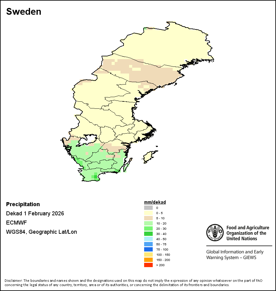 La carte illustre les volumes cumulés de précipitations au cours d’une décade (une période de 10 jours). Les estimations concernant les précipitations pour tous les pays africains (à l'exception du Cap Vert et de Maurice) proviennent du NOAA/FEWSNet, tandis que les données concernant les autres pays sont obtenues à partir du CEPMMT.