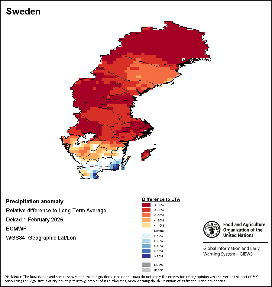 Les sécheresses agricoles sont classées selon leur intensité et sont réparties en quatre catégories: extrême, grave, modérée ou légère. L'intensité des sécheresses est calculée à l'aide de l’indice de santé de la végétation moyen pondéré, agrégé au niveau administratif GAUL 2, selon lequel moins l’état de santé de la végétation est bon plus la sécheresse est sévère.