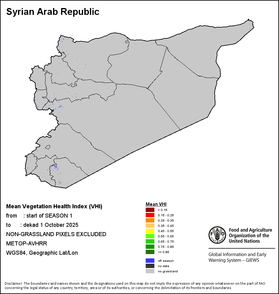 The country level maps and graphs depict the latest 36-month period of the seasonal, vegetation and precipitation indicators. The data is presented by dekad and month.   More