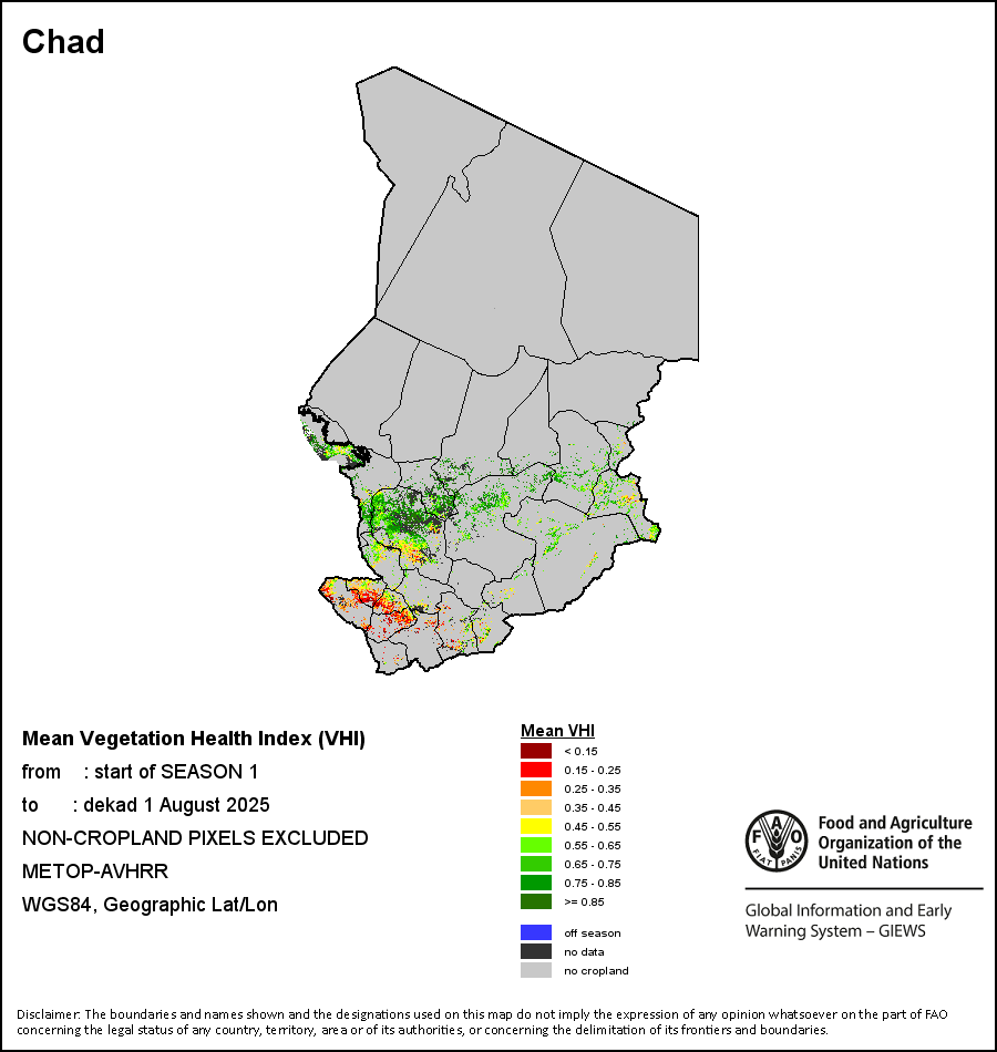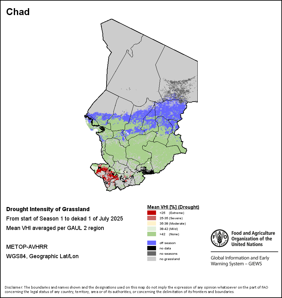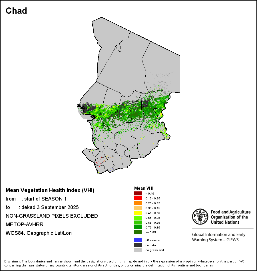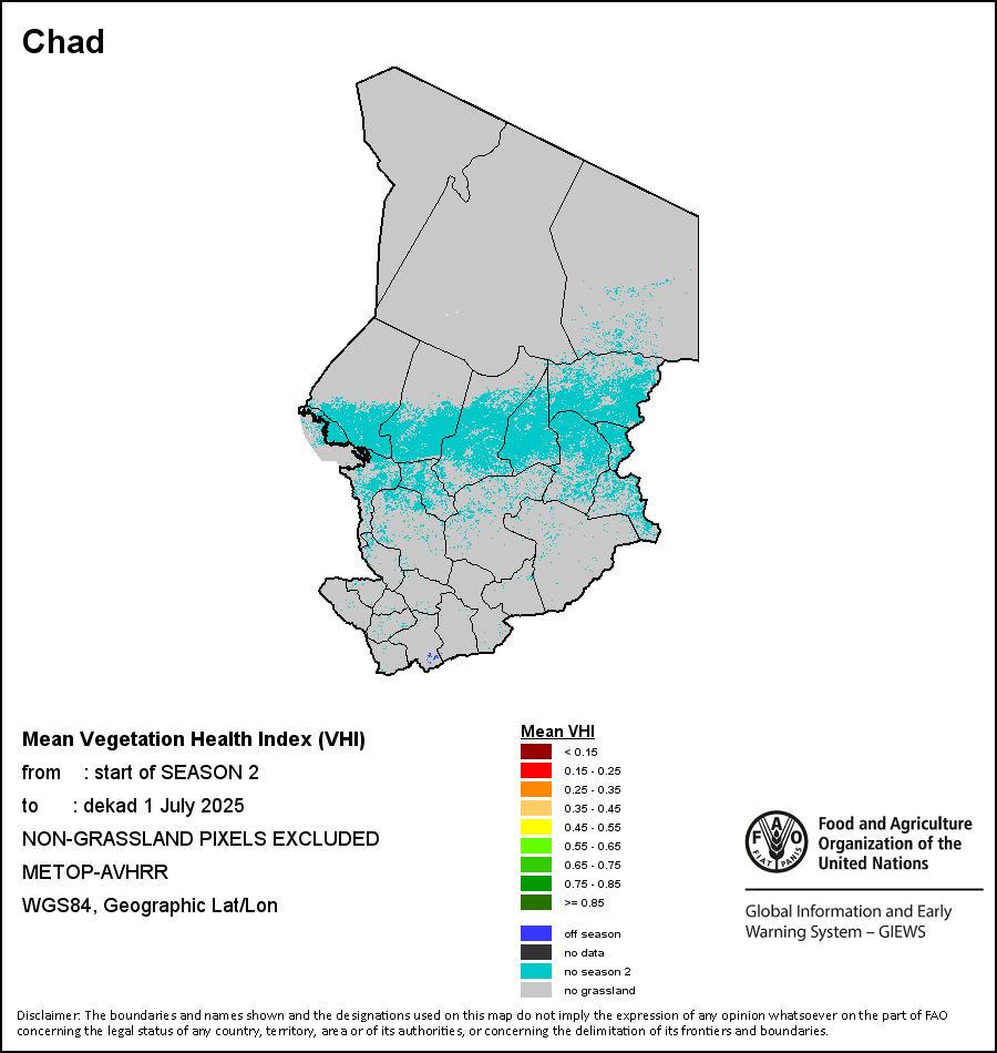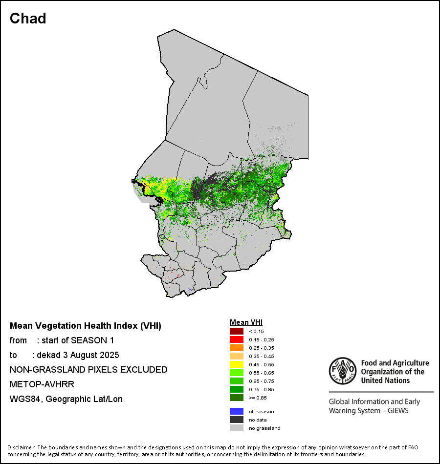 The country level maps and graphs depict the latest 36-month period of the seasonal, vegetation and precipitation indicators. The data is presented by dekad and month.   More