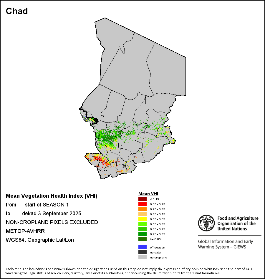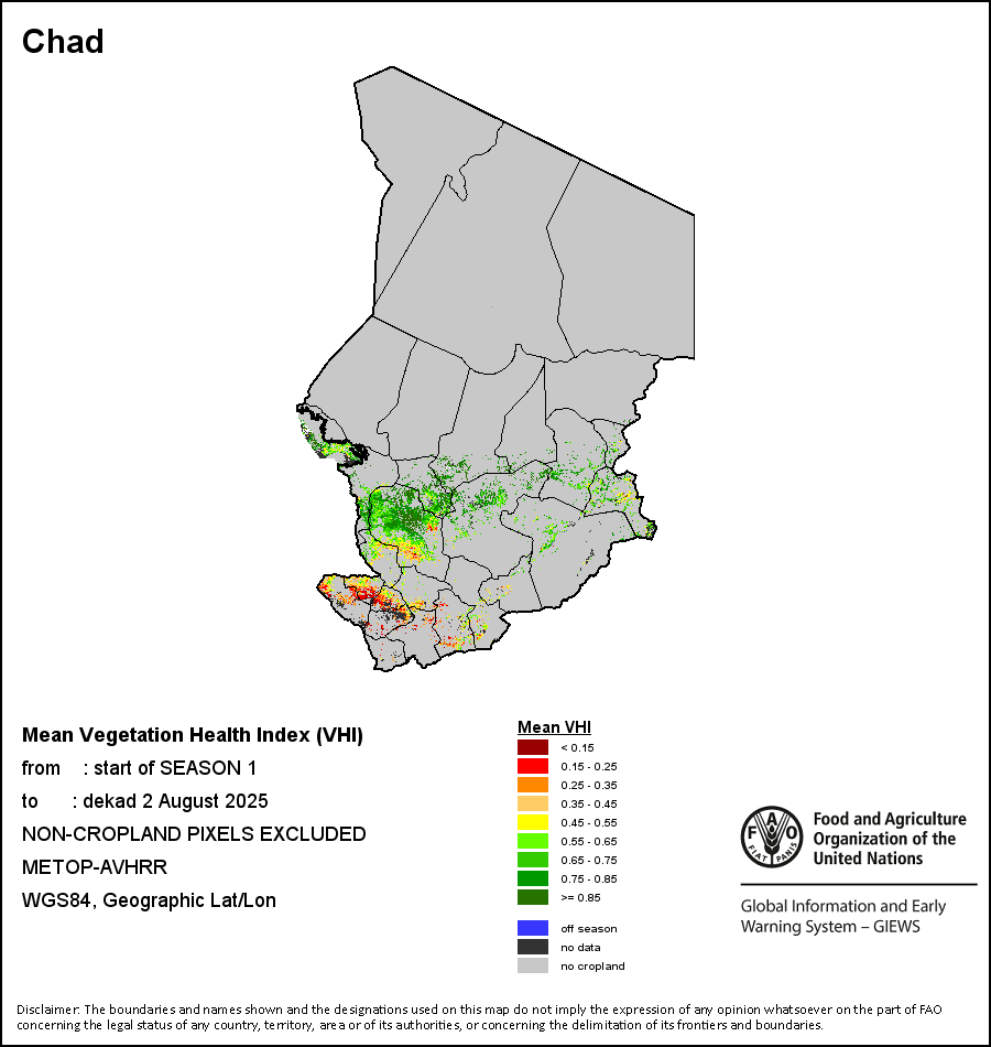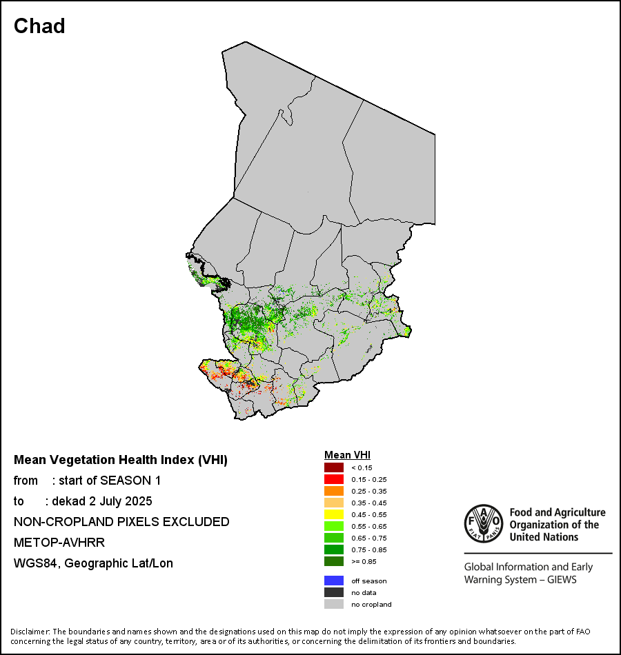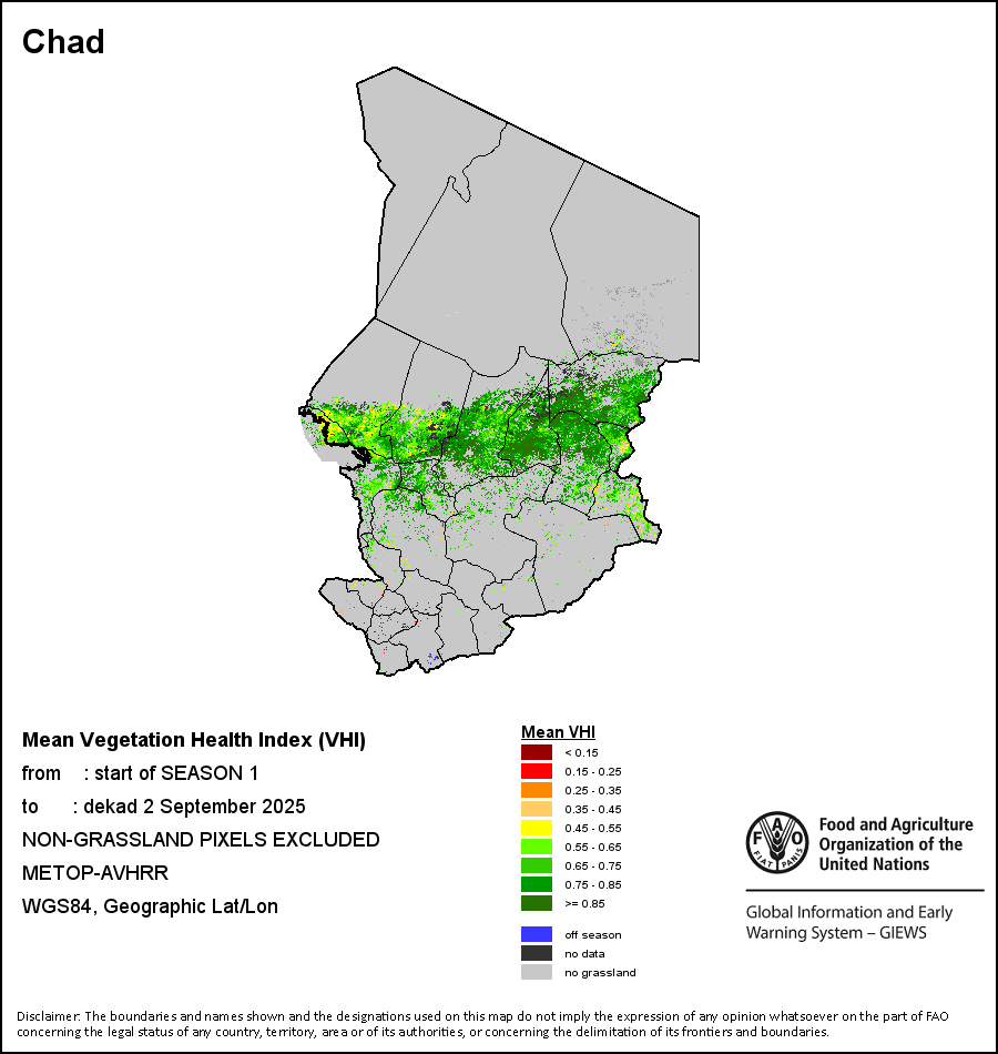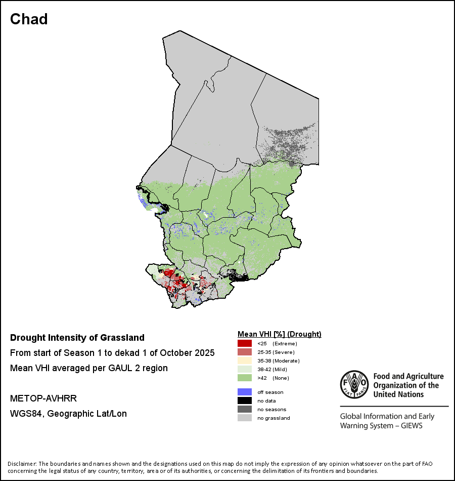 The country level maps and graphs depict the latest 36-month period of the seasonal, vegetation and precipitation indicators. The data is presented by dekad and month.   More