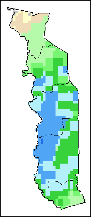 Los mapas y gráficos nacionales representan el último periodo de 36 meses de los indicadores estacionales, de vegetación y de precipitación. Los datos se presentan por periodos de 10 días y por meses. Los tres indicadores de vegetación se basan en datos de vegetación registrados cada diez días por el sensor METOP-AVHRR con una resolución de 1km (2007 y posterior). Los datos con una resolución de 1km del período 1984-2006 se extrapolaron a partir del conjunto de datos NOAA-AVHRR con 16km de resolución. Las estimaciones de precipitación de todos los países africanos (excepto Cabo Verde y Mauricio) se obtienen de NOAA/FEWSNet (16km de resolución), mientras que para los restantes países los datos se obtienen Centro Europeo de Predicción Meteorológica a Plazo Medio (ECMWF siglas en Inglés, 25km de resolución). Debido a la mayor resolución de los indicadores de vegetación (p.ej., NDVI, VHI) en comparación con los indicadores de precipitación de resolución más gruesa, el número de unidades subnacionales para las que se pueden generar estadísticas zonales válidas para los índices de vegetación es mayor que el número de unidades para los indicadores de precipitación en algunos países.