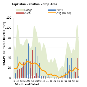 The Normalized Difference Vegetation Index (NDVI) measures the “greenness” of ground cover and is used as a proxy to indicate the density and health of vegetation. NDVI values range from +1 to -1, with high positive values corresponding to dense and healthy vegetation, and low and/or negative NDVI values indicating poor vegetation conditions or sparse vegetative cover. The NDVI anomaly indicates the variation of the current dekad to the long-term average, where a positive value (for example 20 percent) would signify enhanced vegetation conditions compared to the average, while a negative value (for instance -40 percent) would indicate comparatively poor vegetation conditions.