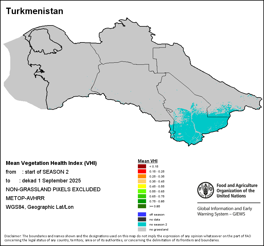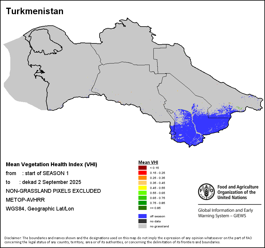 国别地图和图表显示的是最近36个月期间的季节、植被和降水指标。数据按每10天和每月呈现。   更多