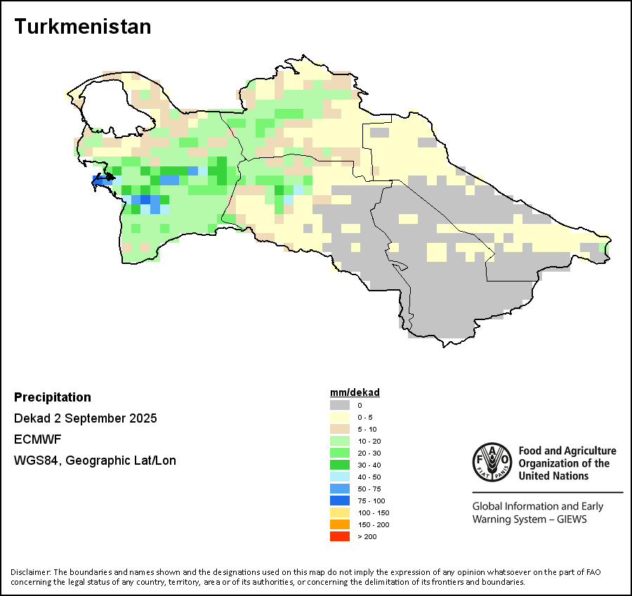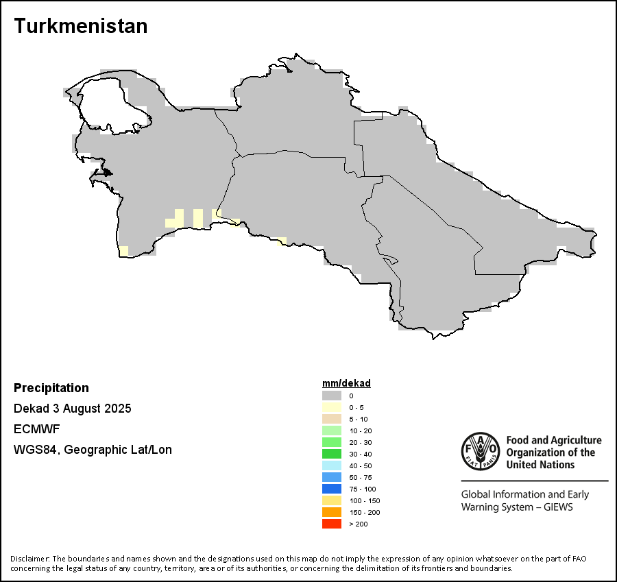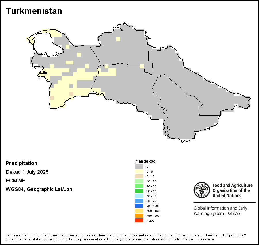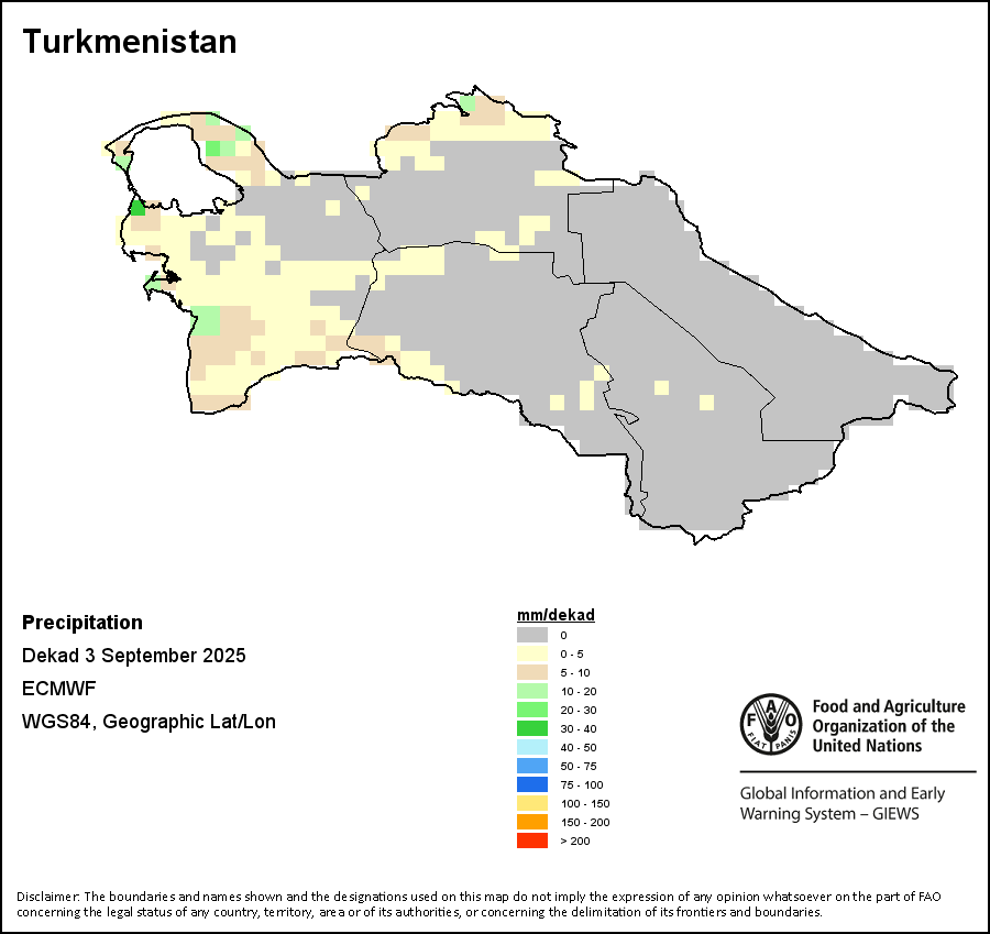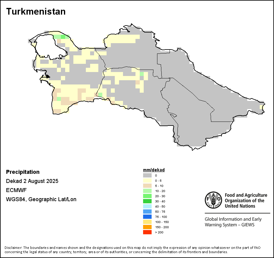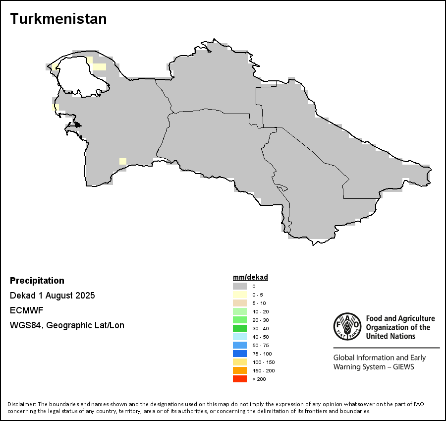 该图谱显示了每一旬(十天)的累积降水量。 所有非洲国家的降水量估算(除佛得角和毛里求斯外)均取自NOAA/FEWSNet,其他国家则取自ECMWF。