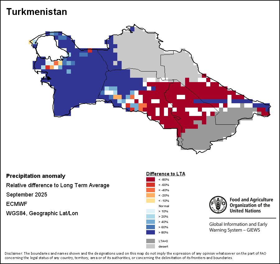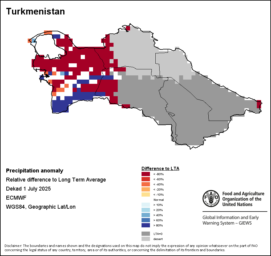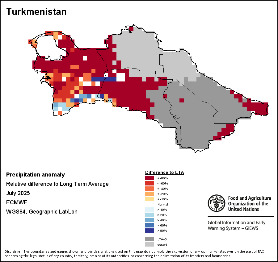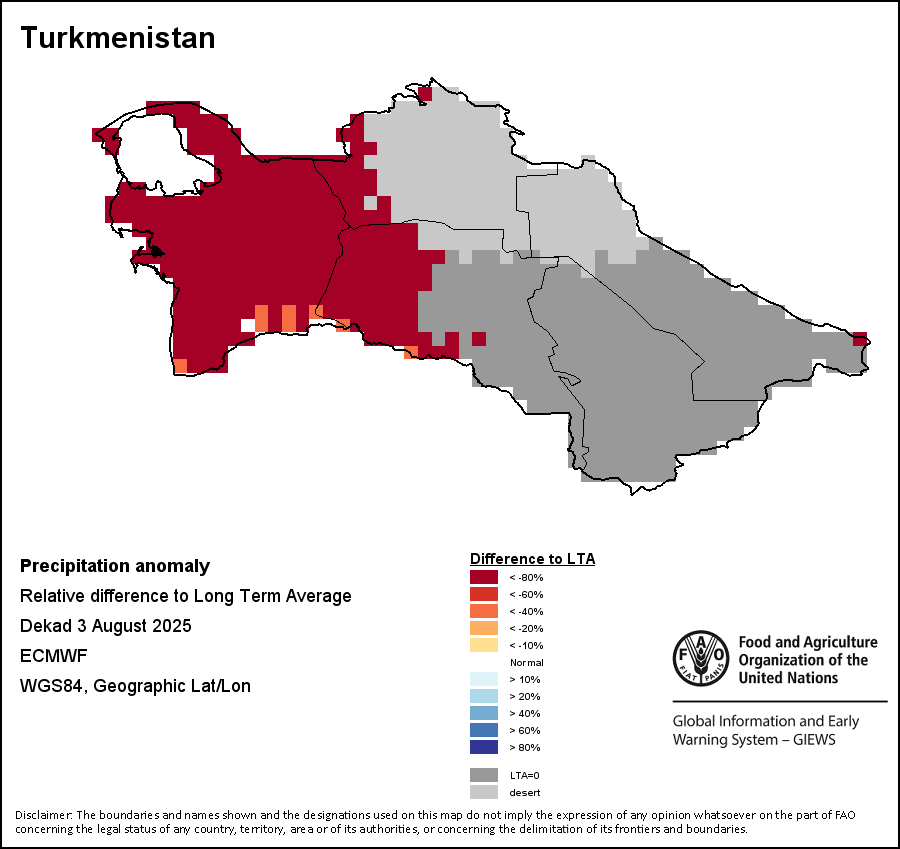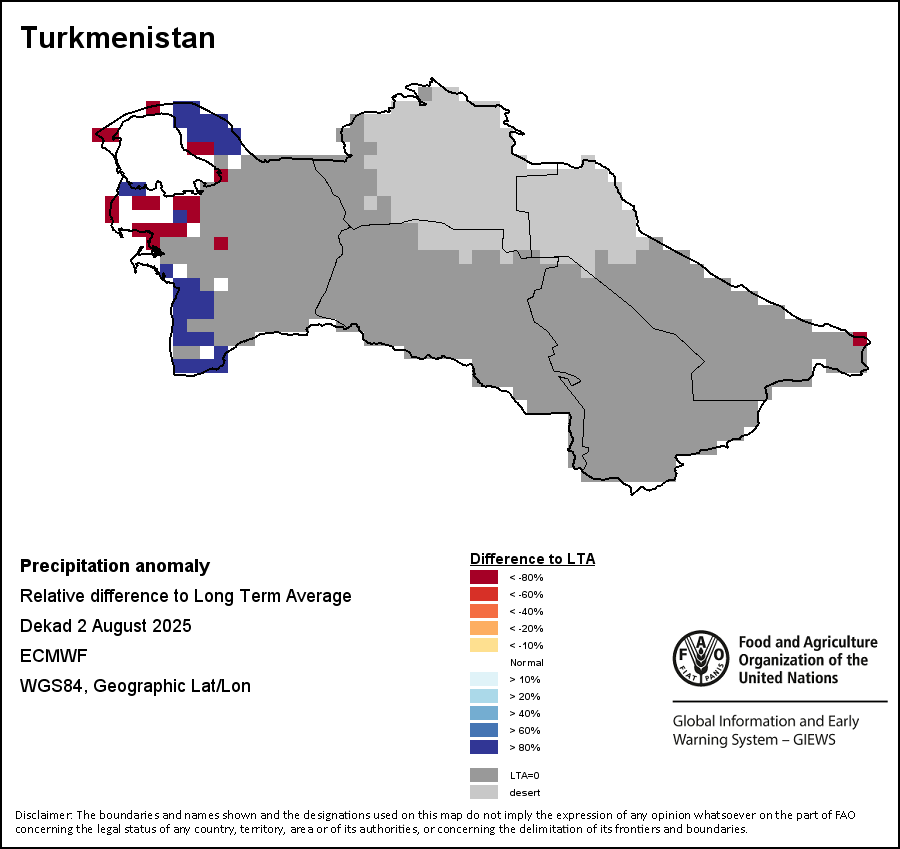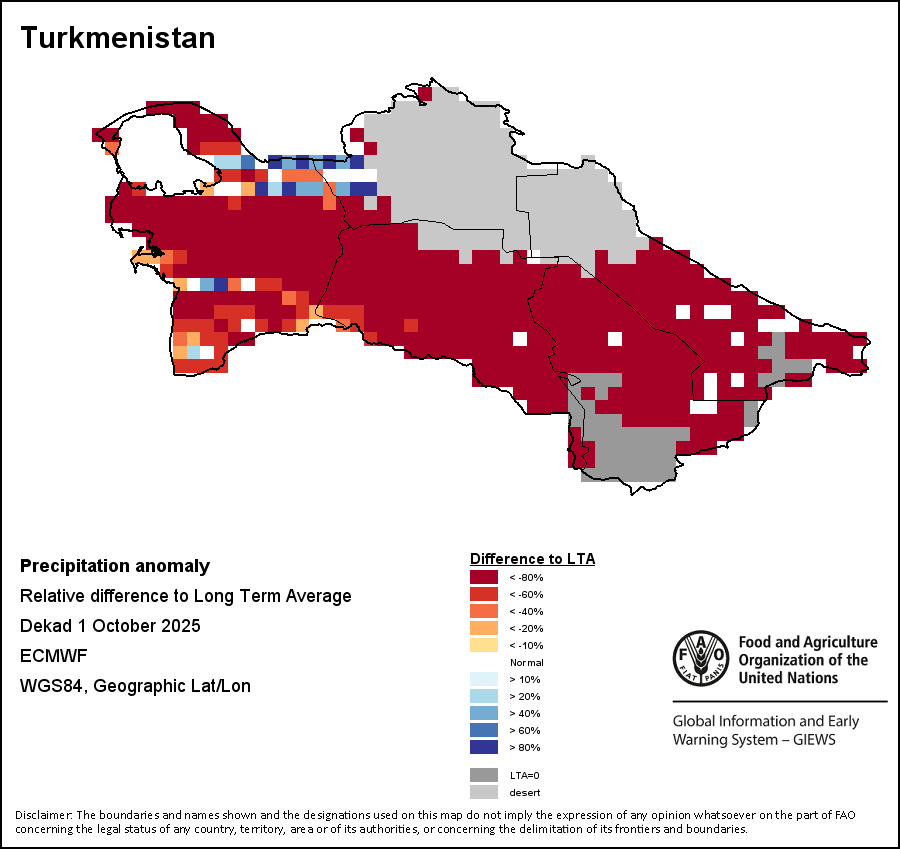 该图谱显示了当前降水量与平均水平之间的差异。 由降水量水平与长期平均值(LTA)进行比较得出,长期平均值系指1989-2015年期间的数值。暖色调指示的是降水量低于平均水平的地区,而冷色调指示的则是降水量高于平均水平的地区。降雨量估算数据来自欧洲中期天气预报这些(ECMWF)。