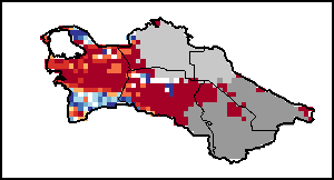 该地图显示的是两类地区的干旱发生频率:i)耕地面积的30%发生旱情;或ii)耕地面积的50%发生旱情。 严重旱情的历史频率(根据ASI的定义)是根据全部时间序列(1984-2024年)计算得出的。