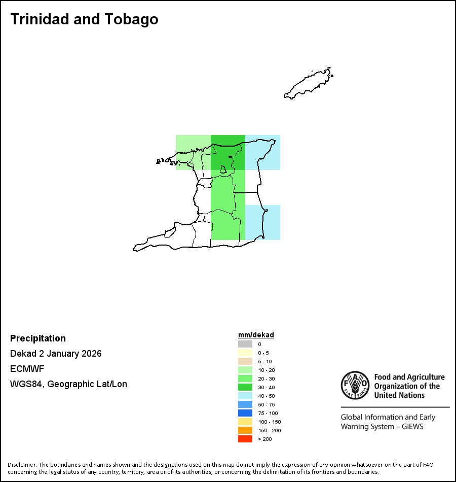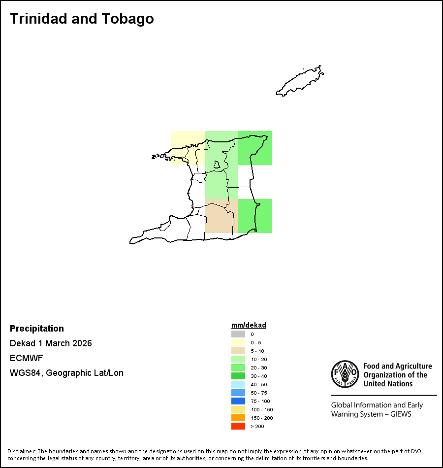 Los mapas y gráficos nacionales representan el último periodo de 36 meses de los indicadores estacionales, de vegetación y de precipitación. Los datos se presentan por periodos de 10 días y por meses. Los tres indicadores de vegetación se basan en datos de vegetación registrados cada diez días por el sensor METOP-AVHRR con una resolución de 1km (2007 y posterior). Los datos con una resolución de 1km del período 1984-2006 se extrapolaron a partir del conjunto de datos NOAA-AVHRR con 16km de resolución. Las estimaciones de precipitación de todos los países africanos (excepto Cabo Verde y Mauricio) se obtienen de NOAA/FEWSNet (16km de resolución), mientras que para los restantes países los datos se obtienen Centro Europeo de Predicción Meteorológica a Plazo Medio (ECMWF siglas en Inglés, 25km de resolución). Debido a la mayor resolución de los indicadores de vegetación (p.ej., NDVI, VHI) en comparación con los indicadores de precipitación de resolución más gruesa, el número de unidades subnacionales para las que se pueden generar estadísticas zonales válidas para los índices de vegetación es mayor que el número de unidades para los indicadores de precipitación en algunos países.