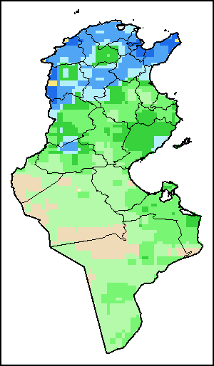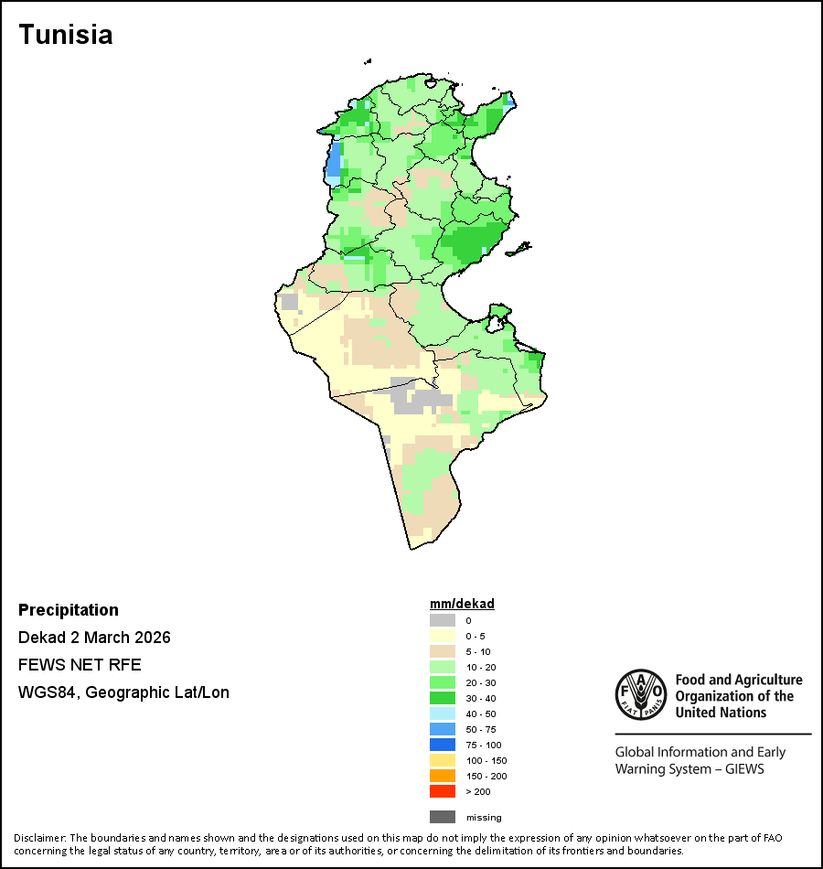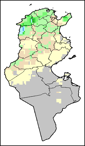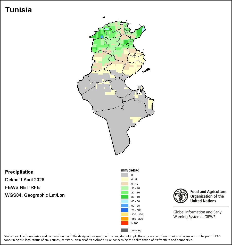 На картах и графиках на уровне страны показывается последний период в 36 месяцев по сезонным показателям, показателям растительного покрова и уровня атмосферных осадков. Данные представляются по 10-дневным периодам и по месяцам. Все три показателя растительного покрова основаны на 10-дневных данных по растительному покрову, полученных от сенсора METOR-AVHRR при разрешении в 1 км (начиная с 2007 года). Данные при разрешении в 1 км за период 1984-2006 гг. были получены из банка данных NOAA-AVHRR при разрешении в 16 км. Оценки атмосферных осадков для всех африканских стран (за исключением Кабо-Верде и Маврикия) получены из системы NOAA/Системы раннего предупреждения об опасности голода (разрешении в 16 km), а по остальным странам данные получены из системы ECMWF (разрешении в 25 km). Благодаря более высокой разрешающей способности показателей состояния растительного покрова (например, NDVI, VHI) по сравнению с показателями осадков, у некоторых стран количество субнациональных единиц, для которых можно получить действительную статистику по данным показателям, больше, чем по показателям осадков.
