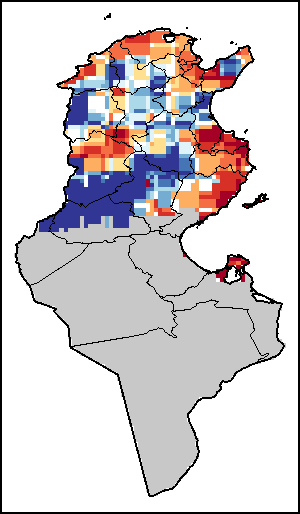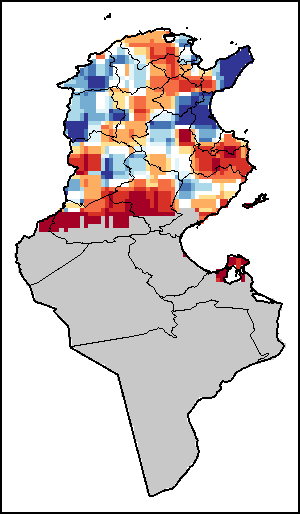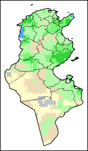 Нормализованный Индекс Разности Растительности (NDVI) измеряет «зелёность» почвенного покрова и используется в качестве прокси, для определения плотности и здоровья растительного покрова. Значения NDVI варьируются от +1 до -1, с высокими положительными значениями, соответствующими плотной и здоровой растительности, и низкими и/или отрицательными значениями NDVI, указывающими на плохое состояние растений и редкий растительный покров. NDVI Аномалия указывает на изменения в текущей декаде относительно среднего значения длительных исторических показателей, где положительное значение (например, 20 процентов) означает улучшенное состояние растительности по сравнению со средним показателем, тогда как отрицательное значение (например, -40 процентов) указывает на сравнительно плохое состояние растений.