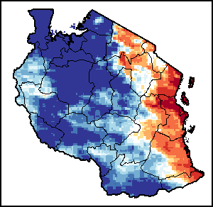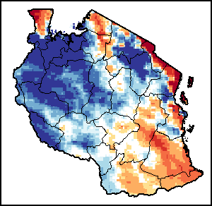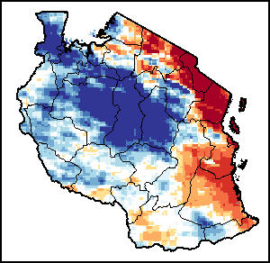 La carte illustre la différence entre le volume actuel des précipitations et leur niveau moyen. Les niveaux de précipitation sont comparés à la moyenne à long terme (MLT), qui renvoie à la période 1989-2015. Les couleurs plus chaudes identifient les zones qui ont reçu des précipitations inférieures à la moyenne, alors que les couleurs plus froides sont attribuées aux zones où les précipitations ont été supérieures à la moyenne.