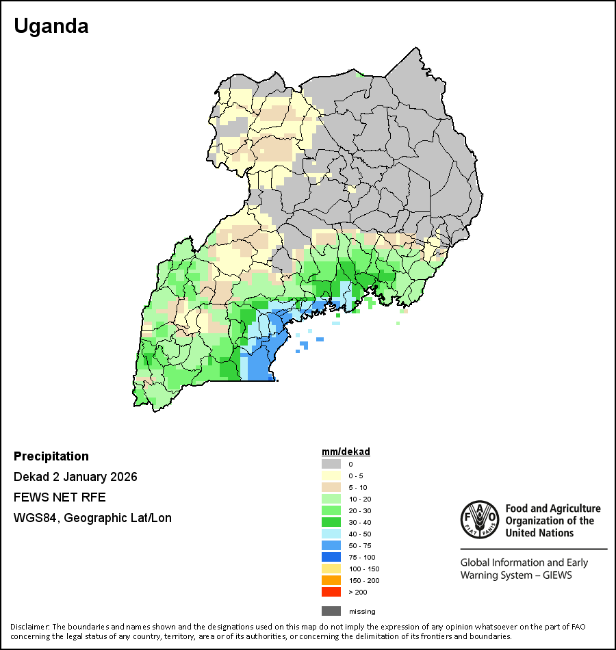 Los mapas y gráficos nacionales representan el último periodo de 36 meses de los indicadores estacionales, de vegetación y de precipitación. Los datos se presentan por periodos de 10 días y por meses. Los tres indicadores de vegetación se basan en datos de vegetación registrados cada diez días por el sensor METOP-AVHRR con una resolución de 1km (2007 y posterior). Los datos con una resolución de 1km del período 1984-2006 se extrapolaron a partir del conjunto de datos NOAA-AVHRR con 16km de resolución. Las estimaciones de precipitación de todos los países africanos (excepto Cabo Verde y Mauricio) se obtienen de NOAA/FEWSNet (16km de resolución), mientras que para los restantes países los datos se obtienen Centro Europeo de Predicción Meteorológica a Plazo Medio (ECMWF siglas en Inglés, 25km de resolución). Debido a la mayor resolución de los indicadores de vegetación (p.ej., NDVI, VHI) en comparación con los indicadores de precipitación de resolución más gruesa, el número de unidades subnacionales para las que se pueden generar estadísticas zonales válidas para los índices de vegetación es mayor que el número de unidades para los indicadores de precipitación en algunos países.