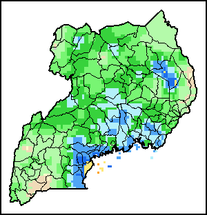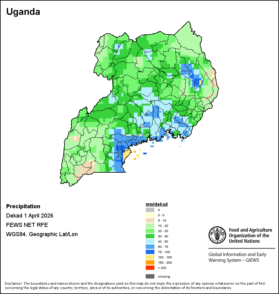 该图谱显示了每一旬(十天)的累积降水量。 所有非洲国家的降水量估算(除佛得角和毛里求斯外)均取自NOAA/FEWSNet,其他国家则取自ECMWF。