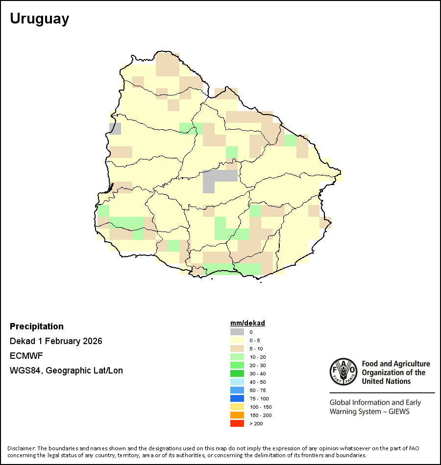 La carte illustre les volumes cumulés de précipitations au cours d’une décade (une période de 10 jours). Les estimations concernant les précipitations pour tous les pays africains (à l'exception du Cap Vert et de Maurice) proviennent du NOAA/FEWSNet, tandis que les données concernant les autres pays sont obtenues à partir du CEPMMT.