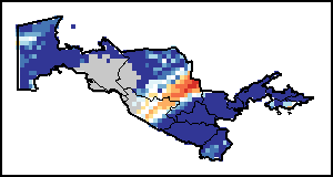 The Agricultural Stress Index (ASI) is a quick-look indicator that facilitates the early identification of cropped land with a high likelihood of water stress (drought). The Index is based on the integration of the Vegetation Health Index (VHI) in two dimensions that are critical in the assessment of a drought event in agriculture: temporal and spatial. The first step of the ASI calculation is a temporal averaging of the VHI, assessing the intensity and duration of dry periods occurring during the crop cycle at the pixel level; this calculation includes the use of crop coefficients, which introduces sensitivity of a crop to water stress during each phenological phase. The second step determines the spatial extent of drought events by calculating the percentage of pixels in arable areas with a VHI value below 35 percent (this value was identified as a critical threshold in assessing the extent of drought in previous research by Kogan, 1995). Each administrative area is classified according to the percentage of the affected area to facilitate the quick interpretation of results.