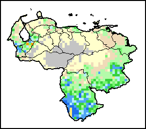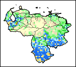 توضح الخريطة الاختلاف بين كمية الهطولات المطرية الراهنة ومعدلها. تقارَن مستويات الهطولات المطرية مع المعدل طويل الأجل الذي يشير إلى الفترة ما بين 1989-2015.
