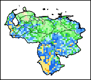 国别地图和图表显示的是最近36个月期间的季节、植被和降水指标。数据按每10天和每月呈现。 所有三项植被指标都是基于来自METOP-AVHRR遥感卫星分辨率1千米的10天(旬)植被数据(2007年及以后)得出的。1984-2006年期间的1千米分辨率数据得自NOAA-AVHRR16千米分辨率数据集。所有非洲国家的降水量估算(除佛得角和毛里求斯外)均取自NOAA/FEWSNet (16千米分辨率),其他国家则取自ECMWF(25千米分辨率)。 由于植被指标(如NDVI、VHI)的空间分辨率高于降水指标,因此,在部分国家能够通过有效分区统计数据计算植被指标的次国家级单元数量,超过能够以相同方式计算降水指标的次国家级单元数量。