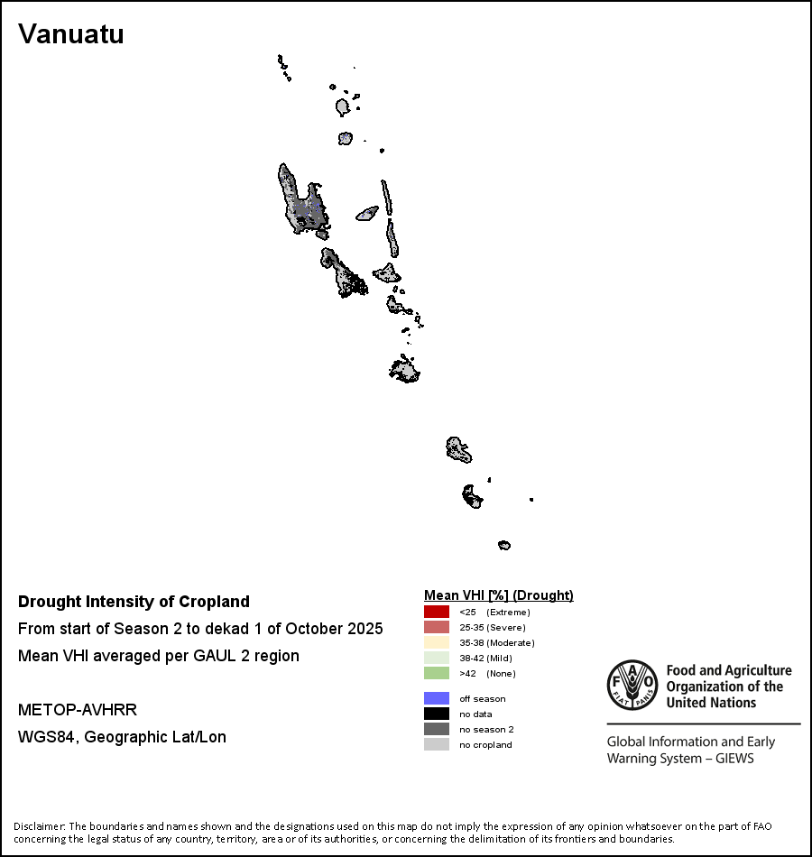 所有三项植被指标都是基于来自METOP-AVHRR遥感卫星分辨率1千米的10天(旬)植被数据(2007年及以后)得出的。1984-2006年期间的1千米分辨率数据得自NOAA-AVHRR16千米分辨率数据集。所有非洲国家的降水量估算(除佛得角和毛里求斯外)均取自NOAA/FEWSNet,其他国家则取自ECMWF。