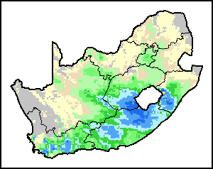 Les cartes et les graphiques au niveau des pays illustrent les indicateurs d’avancement de la campagne, de végétation et de pluviométrie au cours des 36 derniers mois. Les données sont présentées par décade et par mois. Les trois indicateurs de végétation sont basés sur les données relatives à la végétation pour 10 jours (décade) du capteur Metop-AVHRR par pixel de 1 km (à partir de 2007). Les données à 1 km de résolution pour la période 1984-2006 ont été dérivées des données du NOAA-AVHRR à 16 km de résolution. - Les estimations concernant les précipitations pour tous les pays africains (à l'exception du Cap Vert et de Maurice) proviennent du NOAA/FEWSNet, tandis que les données concernant les autres pays sont obtenues à partir du CEPMMT. Compte tenu de la résolution plus élevée des indicateurs de végétation (ex. NDVI, VHI) par rapport à celle des indicateurs de précipitations, plus grossiers, le nombre d’unités infranationales pour lesquelles des statistiques zonales valides peuvent être produites à partir des indices de végétation est, dans certains pays, supérieur à celui obtenu à partir des indicateurs de précipitations.