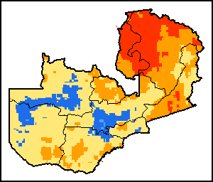 Нормализованный Индекс Разности Растительности (NDVI) измеряет «зелёность» почвенного покрова и используется в качестве прокси, для определения плотности и здоровья растительного покрова. Значения NDVI варьируются от +1 до -1, с высокими положительными значениями, соответствующими плотной и здоровой растительности, и низкими и/или отрицательными значениями NDVI, указывающими на плохое состояние растений и редкий растительный покров. NDVI Аномалия указывает на изменения в текущей декаде относительно среднего значения длительных исторических показателей, где положительное значение (например, 20 процентов) означает улучшенное состояние растительности по сравнению со средним показателем, тогда как отрицательное значение (например, -40 процентов) указывает на сравнительно плохое состояние растений.