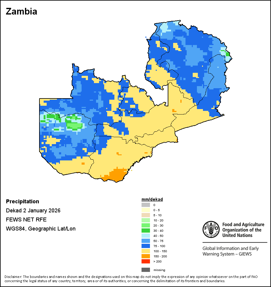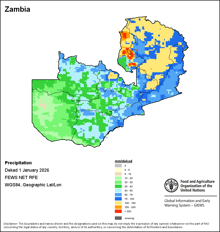 该图谱显示了每一旬(十天)的累积降水量。 所有非洲国家的降水量估算(除佛得角和毛里求斯外)均取自NOAA/FEWSNet,其他国家则取自ECMWF。